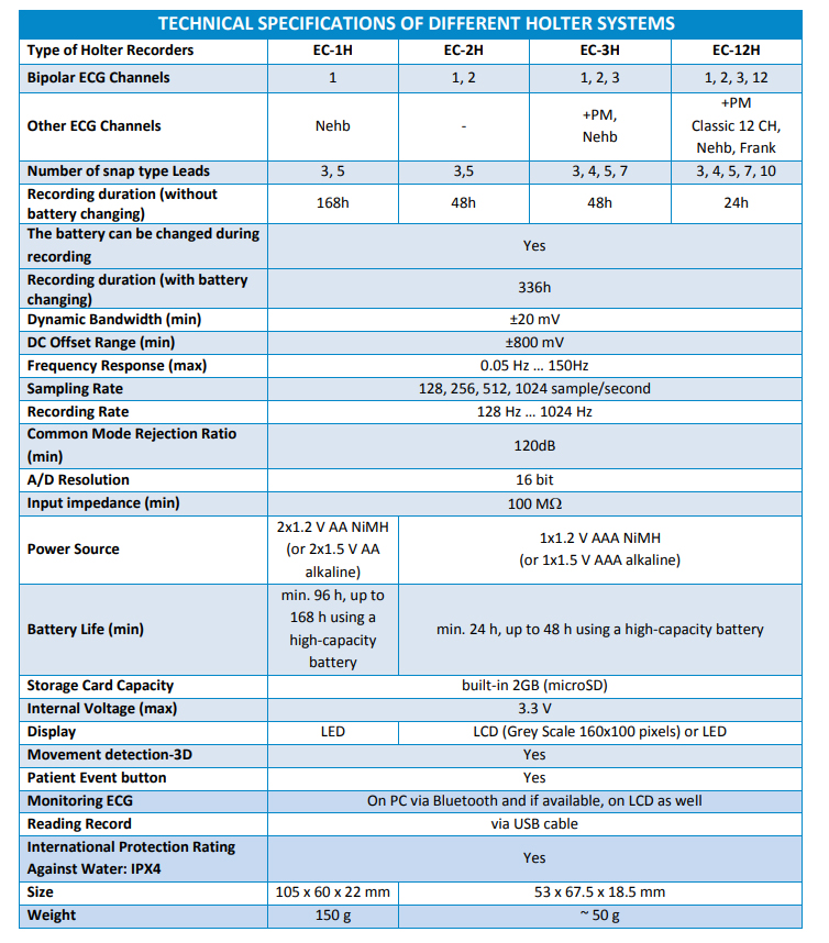 EC-2H | EC-3H | EC-12H, 1-2-3-12 CHANNEL ECG HOLTER SYSTEMS (BLUETOOTH)