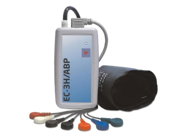 The EC-3H/ABP combines a 3- channel ECG Holter and an ambulatory blood pressure monitor. The QRS and PM can be detected with high precision, while template and rhythm analysis can be interactively modified by the user. This user-friendly software provides high-quality time- and frequency based HRV, QT, ST, PM, ABP and AF results. The transparency and the interpretation of the results are aided by color-coded graphs and tables. The software offers a wide range of languages to choose from.