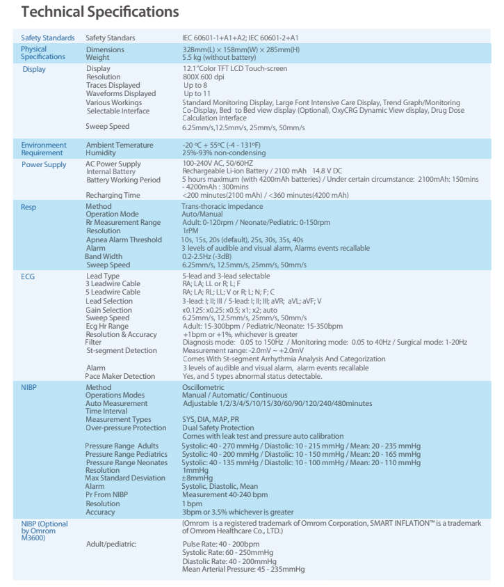 NIBP: SYS, DIA, MAP and Pulse Rate.